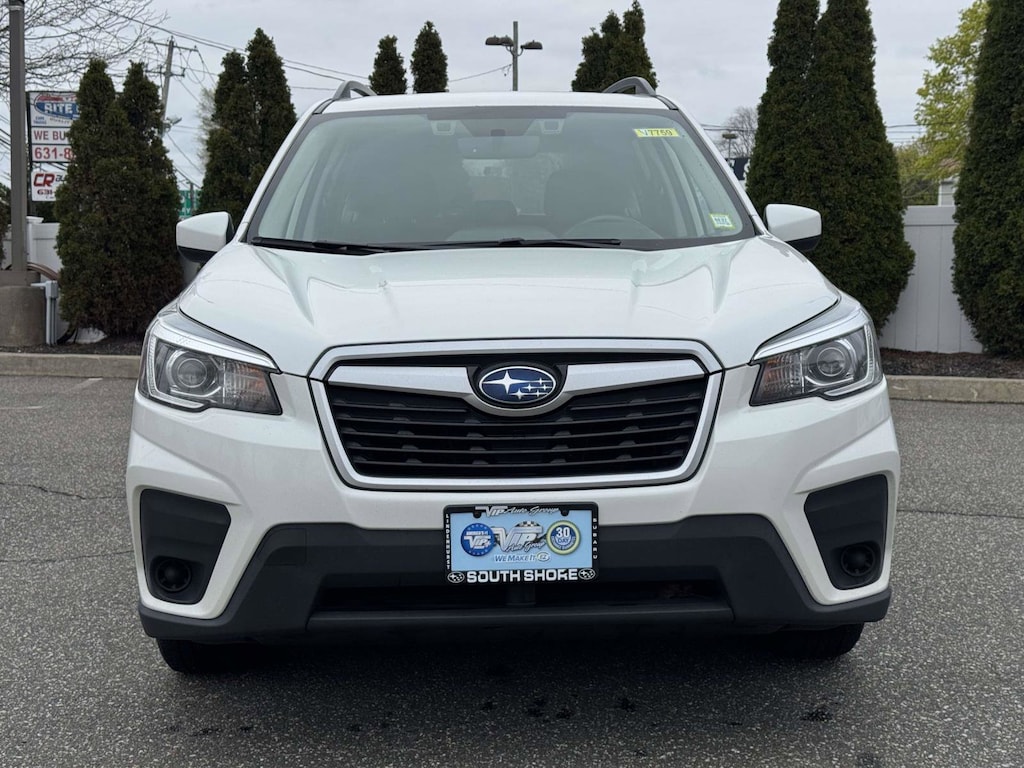 Subaru Symmetrical All-Wheel Drive makes this 2019 Subaru Forester 4D sport utility a confident choice for Long Island, New York, and Northeast driving. Finished in Crystal White Pearl with a clean Black cloth interior, it blends easy-going comfort with everyday practicality. The ride feels composed, the cabin is quiet, and the panoramic power moonroof brings light to every mile. A power driver seat and automatic temperature control help dial in daily comfort, while the split-folding rear seat and roof rails add flexible utility for errands, weekends, and road trips. Efficiency matters on busy commutes, and the Forester delivers up to 33 MPG highway to keep stops at the pump down and value up. Attractive 17 inch black machine finish alloy wheels complete the look.