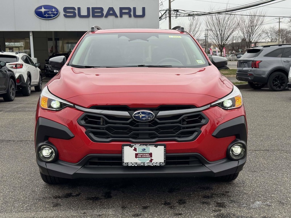 Certified Subaru Symmetrical All-Wheel Drive confidence with ultra-low miles. This 2025 Subaru Crosstrek 4-door sport utility arrives lightly driven at just 1,535 miles and built for the Northeast with year-round capability. The Pure Red exterior pairs with a Black Cloth interior for a clean, sporty look that feels right at home from coastal drives to urban errands. Inside, supportive front bucket seats, a 10-way power driver?s seat, and dual-zone automatic climate control create a calm, comfortable cabin that makes every commute easier. The 2.5L 4-cylinder delivers smooth, eager power, and the compliant four-wheel independent suspension keeps the ride composed on rough city streets and weekend getaways alike.