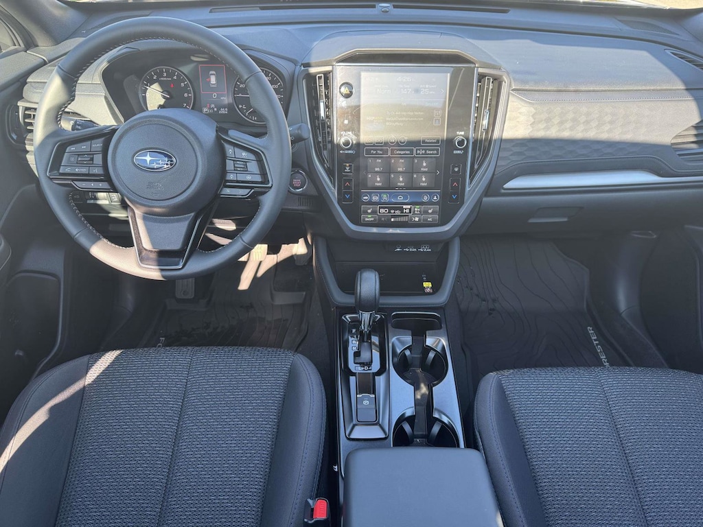 Inside, the Subaru 11.6 inch Multimedia Plus system anchors the cabin with an easy-to-use multimedia display. Enjoy AM/FM and SiriusXM with 360L through 6 speakers, and manage playlists or calls using steering wheel media controls so eyes stay forward. Convenience elevates every drive with an auto-dimming rearview mirror with Compass and HomeLink plus auto-dimming exterior mirrors with approach lighting that greet you at night. The power rear gate makes loading groceries and strollers simpler. Winter-friendly heated side mirrors clear fast, and heated front seats take the edge off cold mornings. Safety innovation includes Blind-Spot Detection with Rear Cross Traffic Alert, Automatic Emergency Steering, Emergency Lane Keep Assist, Auto High-Beam Headlights, and an exterior rear camera. Multiple airbags including knee airbags, 4-wheel disc brakes, ABS, Electronic Stability Control, traction control, and brake assist provide reassuring protection. MySubaru Companion emergency communication service is included for five years for added peace of mind. Alloy wheels, fog lights, and speed-sensing steering deliver confident road manners, and there is remote keyless entry, an overhead console, and a rear seat center armrest for daily practicality. Thoughtful touches like a leather-wrapped steering wheel, trip computer, tachometer, and rear window defroster round out a smartly equipped cabin & more.